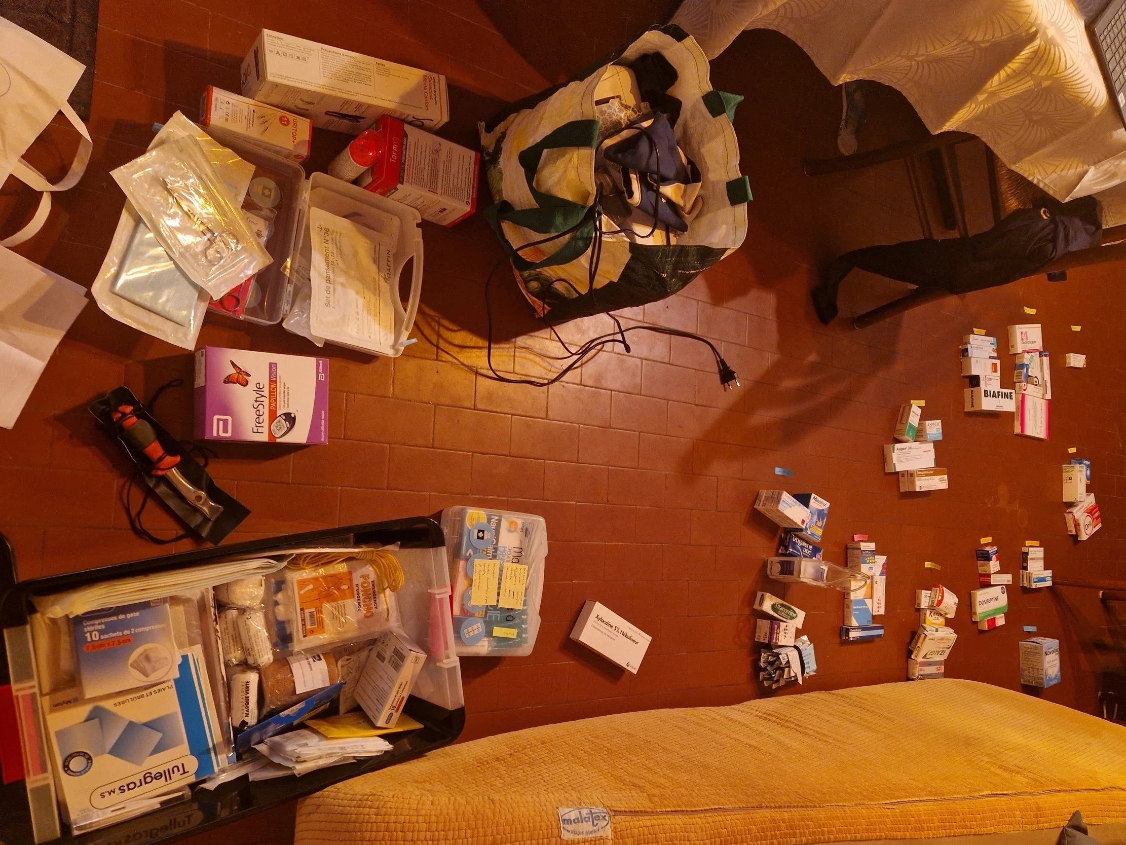 Elle nous aura coûté 600 euros en tout et nous l’avons presque finie : la trousse de secours, réalisée en suivant les recommandations du Centre de Consultation Médicale Marine (CCMM) basé à Toulouse, contient une 50aine de médicaments différents et presque autant de matériel médical. Nous serons parés à absolument toute blessure ou douleur : il suffira d’appeler un médecin en lui fournissant notre liste de médicaments embarqués et il nous indiquera lequel prendre !